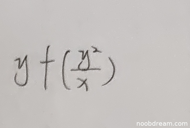 学生两次识别结果分别为“y + (y²/x)”和“$y +(\frac{y^{2}}{x})$”。标准答案为“$y f\left(\frac{y^{2}}{x}\right)$”。