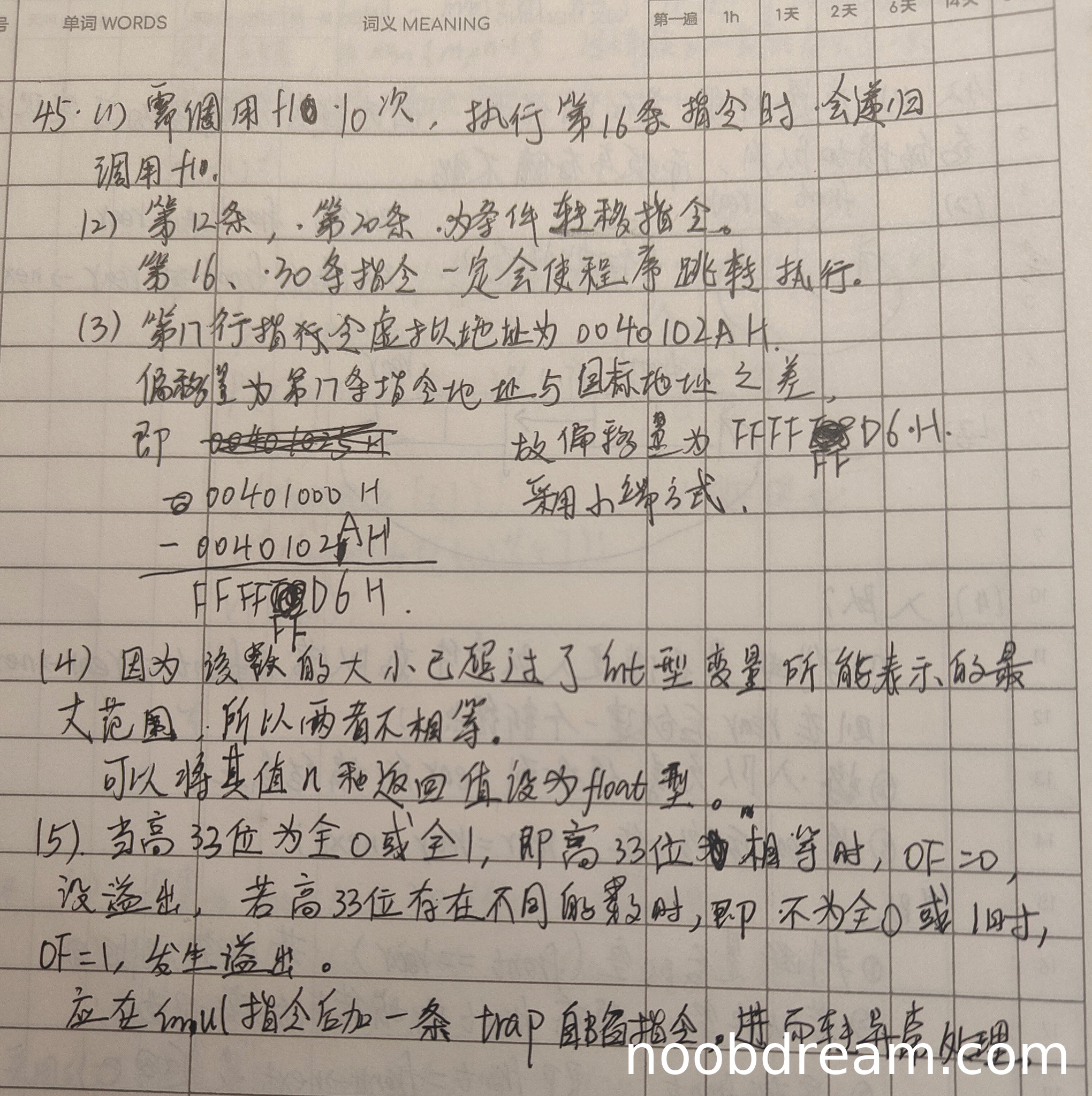 第二问:学生回答“应在imul指令后加一条trap自陷指令,进而转异常处理”。“trap自陷指令”或“溢出自陷指令”都是正确的描述...