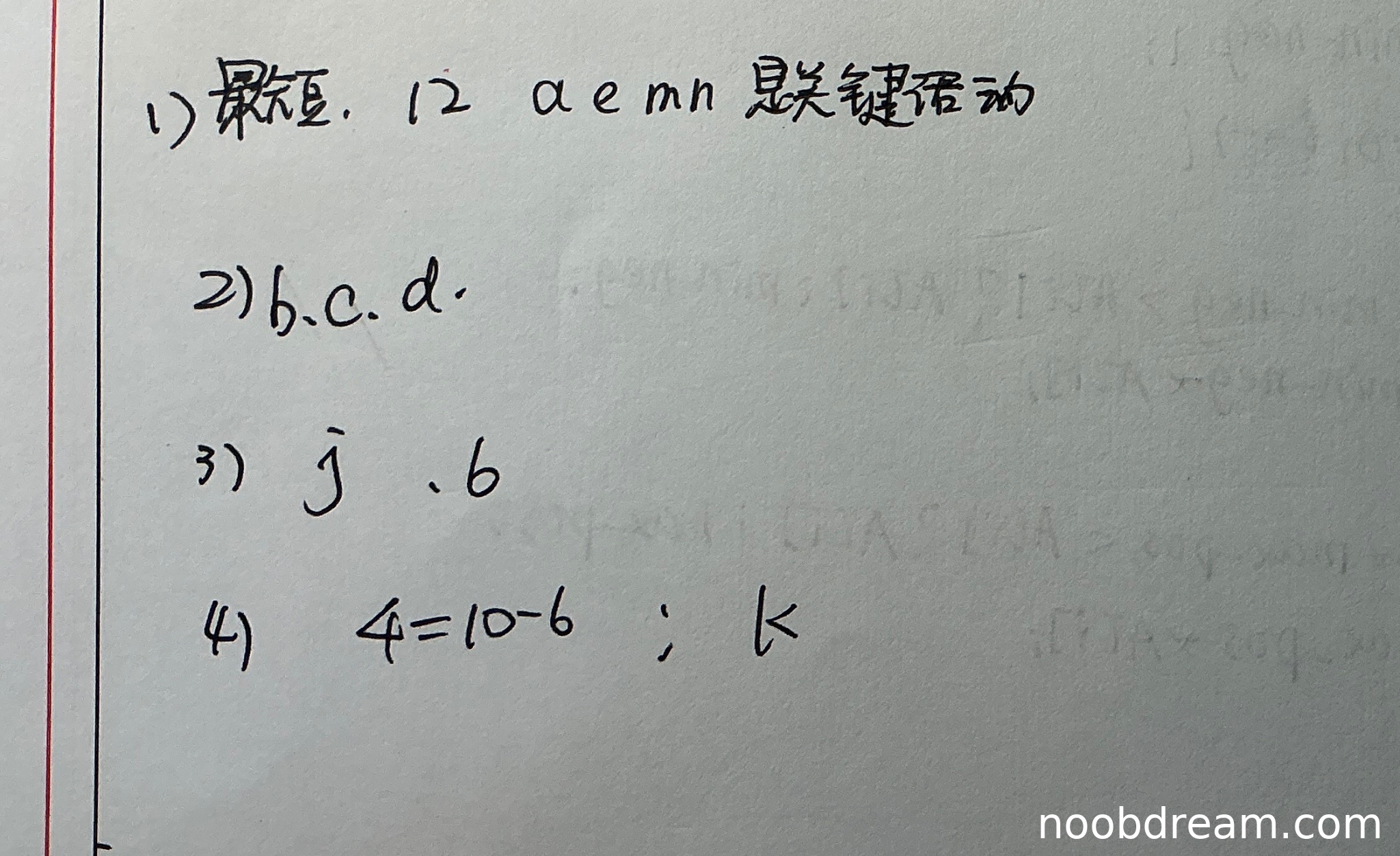 学生答对了活动是j,但余量写成了“b”。根据上下文和识别结果(“j .b”和“j 、b”),很可能是将数字“6”误识别为字母“b”。根据“禁止扣分”规则第1条和第4条,判断为误写,不扣分。因此得2分。