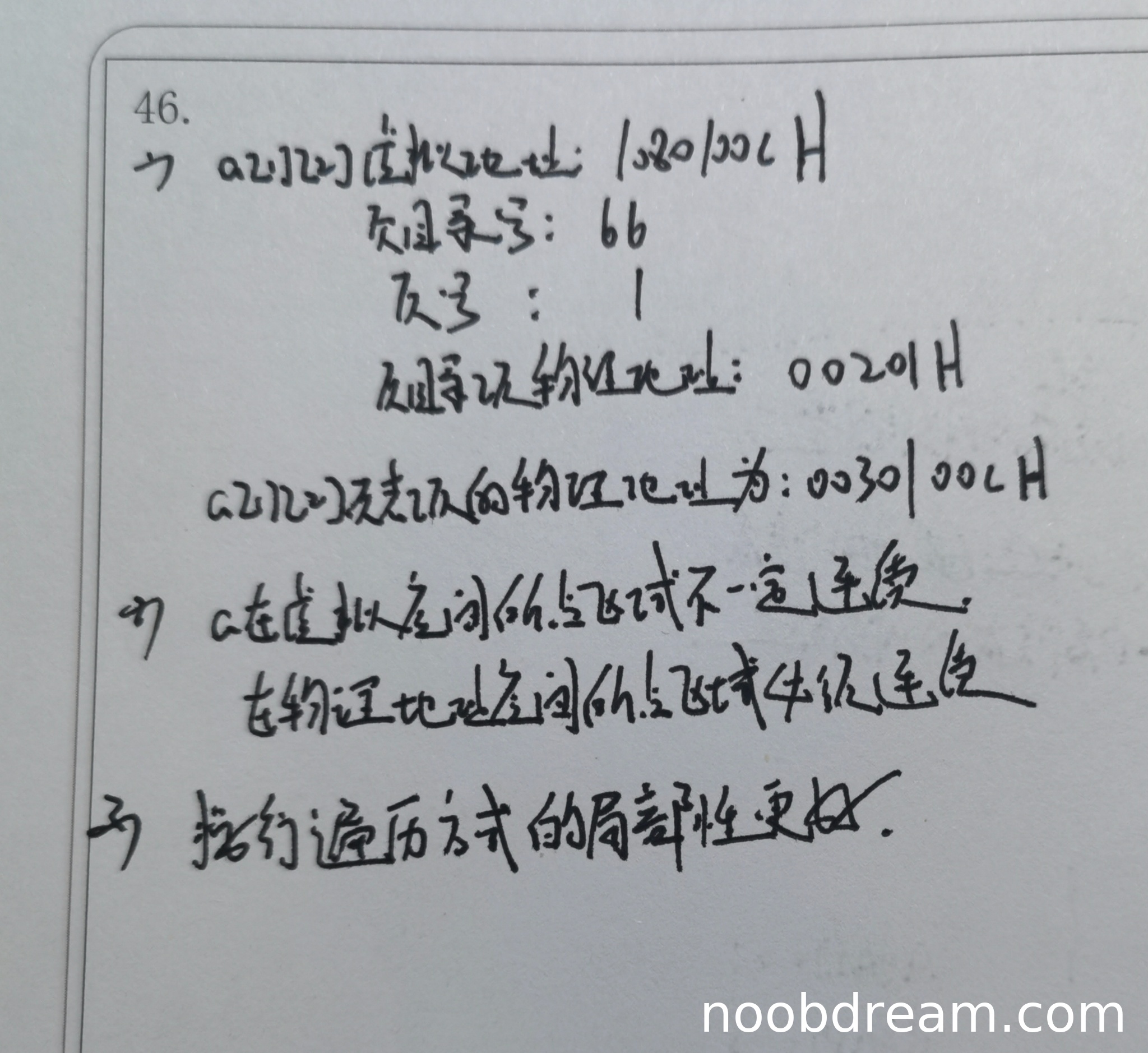 - 虚拟空间:标准答案为必须连续。学生两次答案均认为不一定连续,错误。
