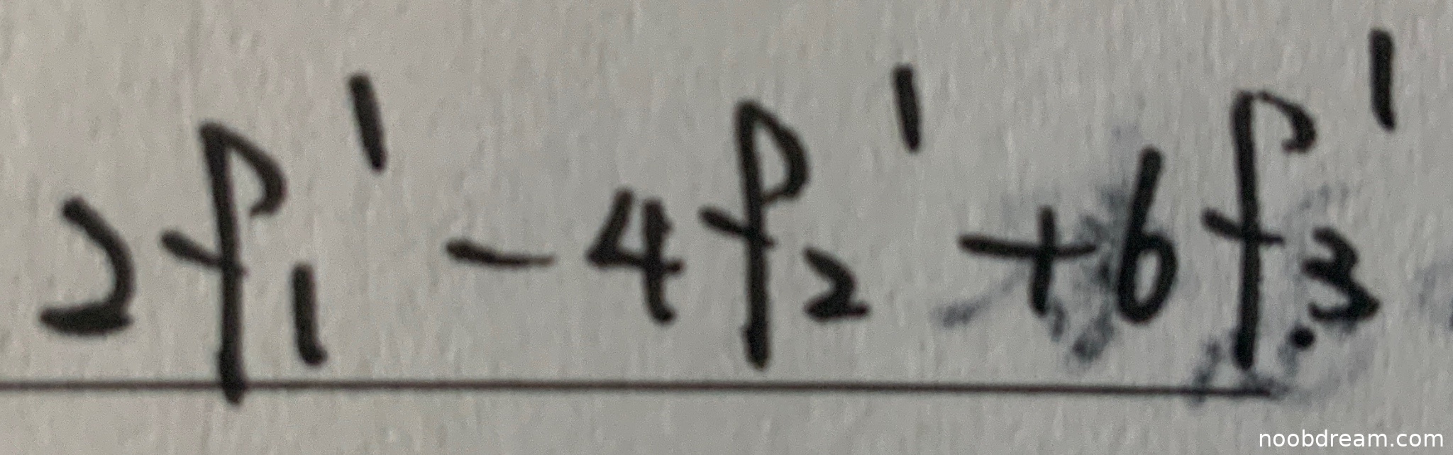 学生答案为:$2f_{1}'-4f_{2}'+6f_{3}'$。标准答案为:$2f_{1}'(1,2,1)-8f_{2}'(1,2,1)+9f_{3}'(1,2,1)$。