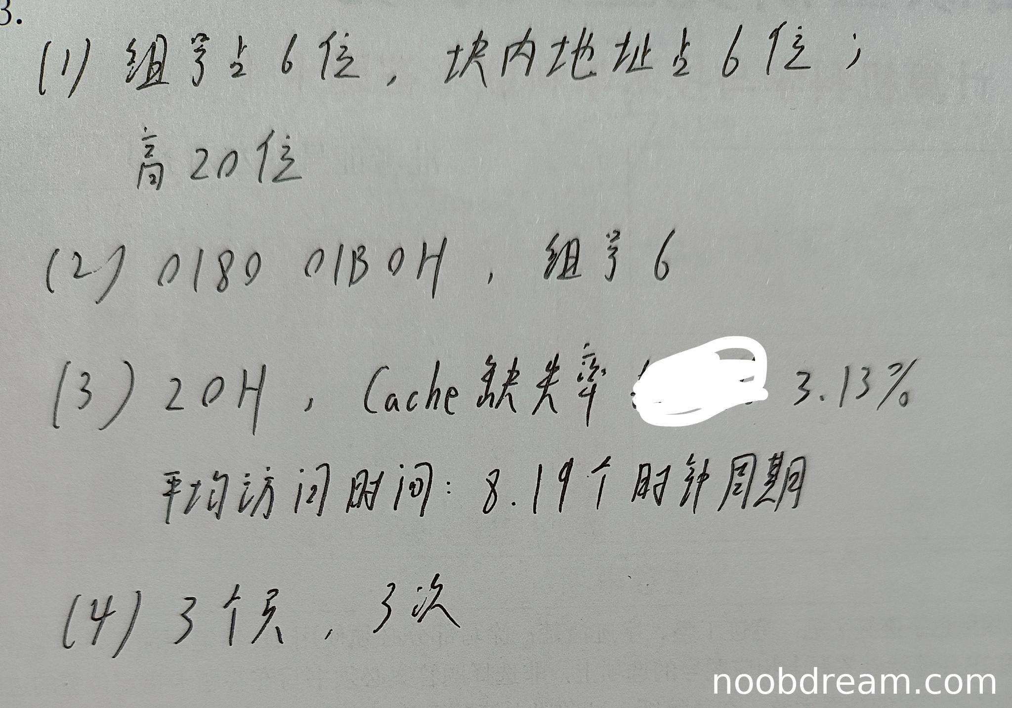 学生答案:20H,Cache缺失率3.13%,平均访问时间:8.19个时钟周期。