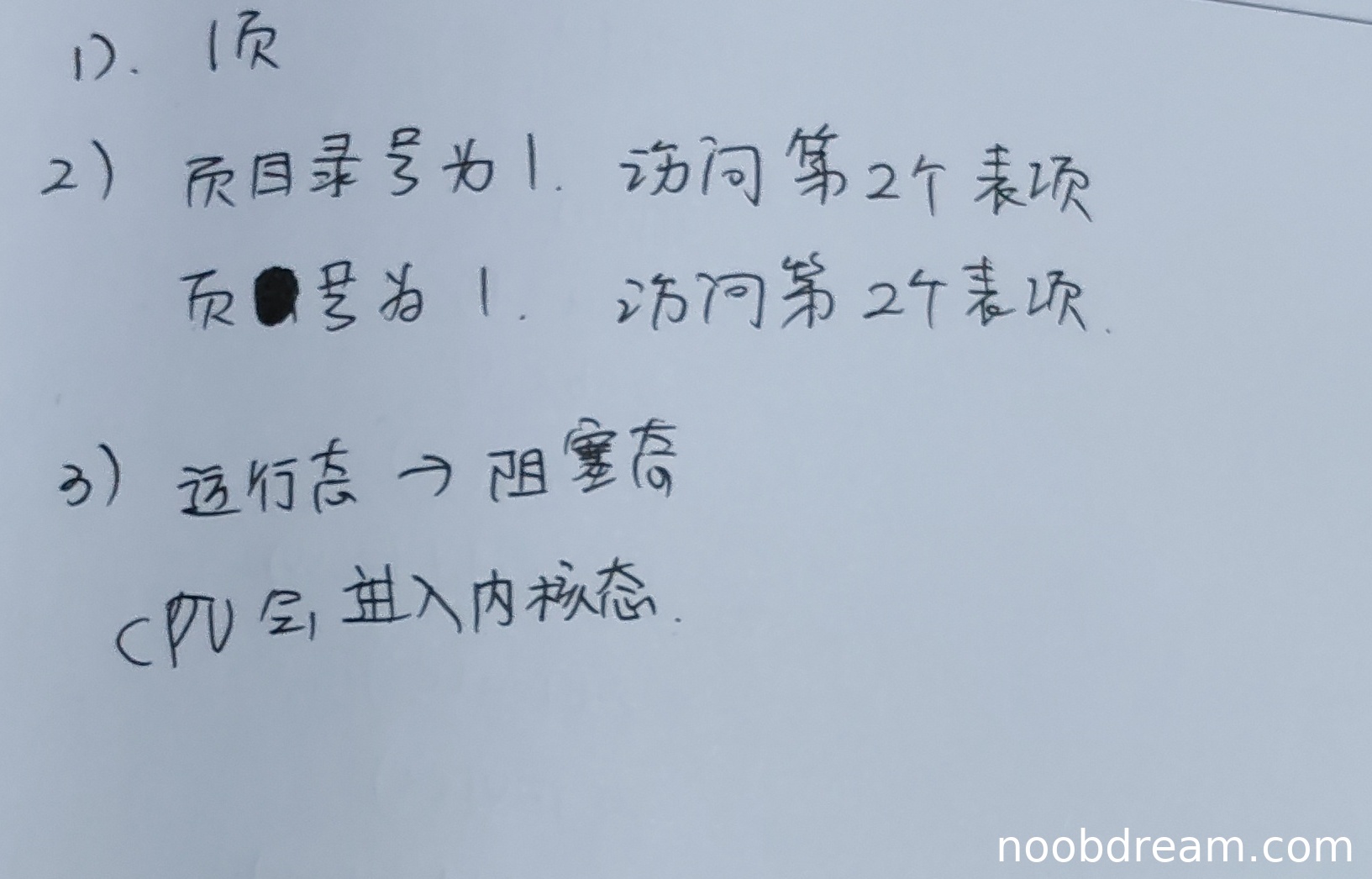 学生回答“页目录号为1. 访问第2个表项;页号为1. 访问第2个表项”。标准答案中,页目录号和页表索引均为1,访问的是第1个表项(编号从0开始)。学生回答“第2个表项”是错误的,这属于逻辑错误。因此,本小题不得分。扣2分。