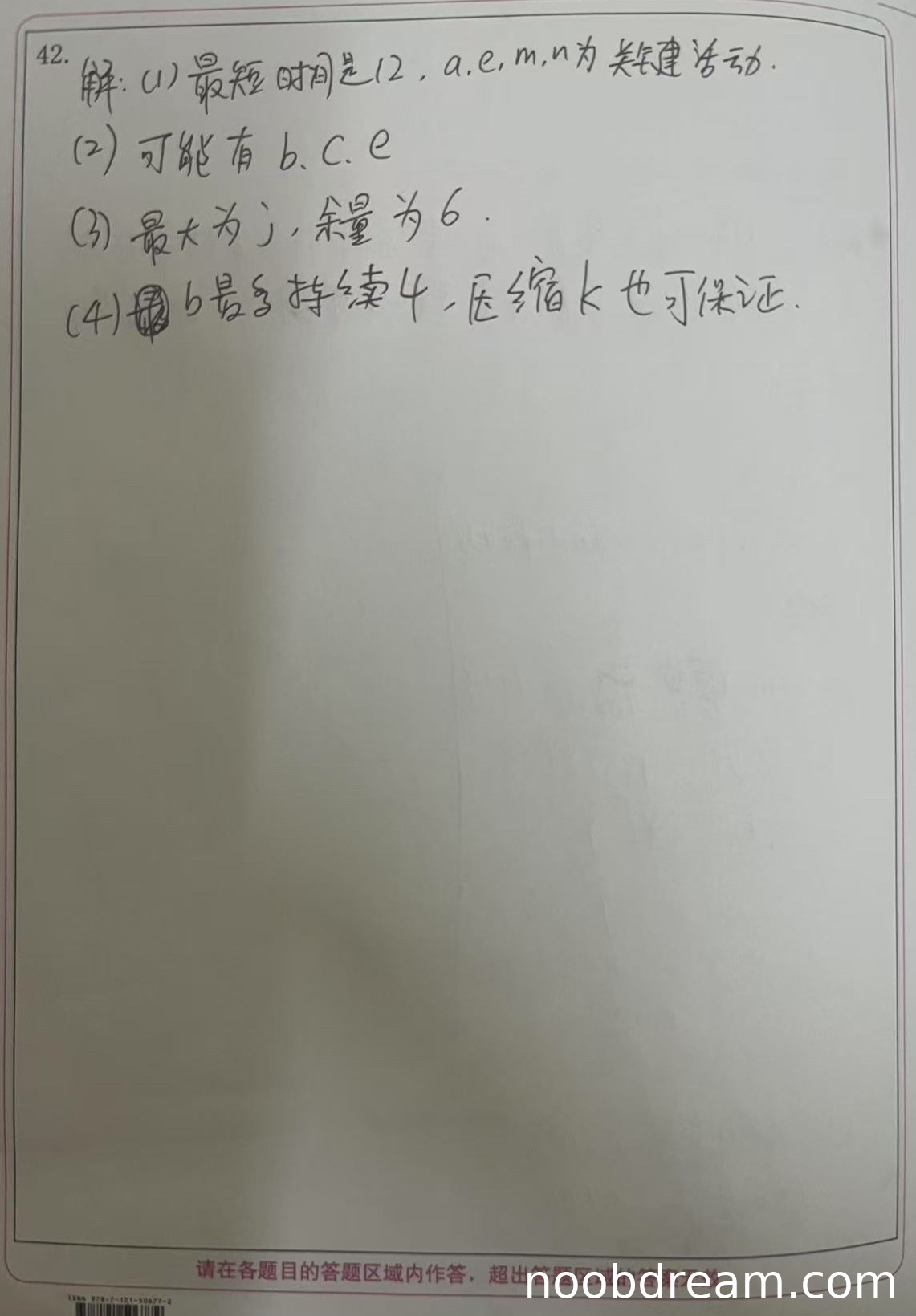 学生答案:最短时间是12,a,e,m,n为关键活动。