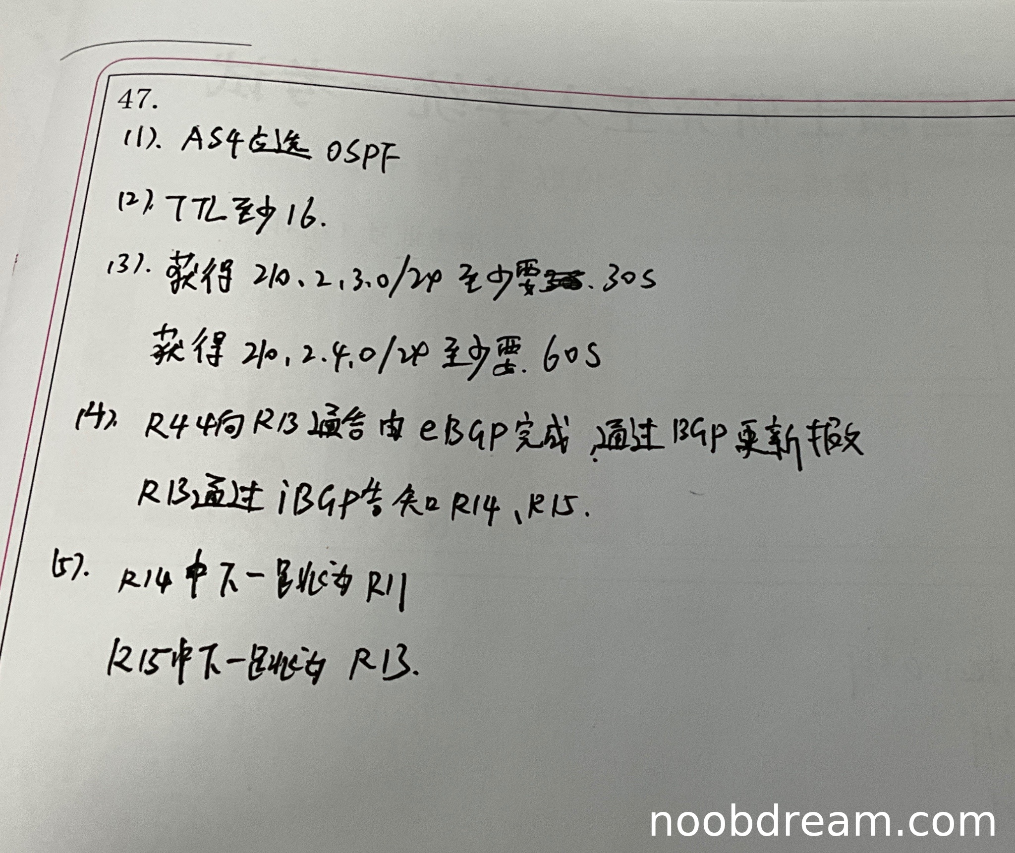 学生回答“AS4 首选 OSPF”,与标准答案一致。得1分。