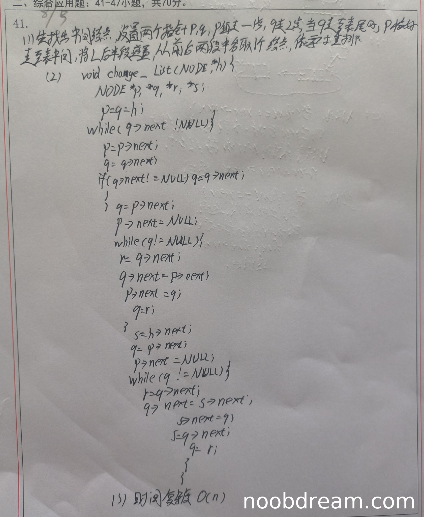 根据“禁止扣分”规则第3条,两次识别中只要有一次正确即不扣分。第二次识别结果的代码逻辑完全正确,关键步骤(找中点、逆置、合并)均正确实现,注释虽未给出但题目未强制要求。因此,按第二次识别结果评分,得8分。