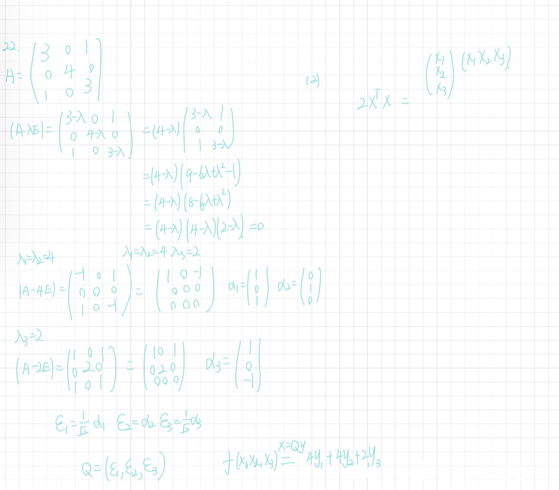 学生作答的第1次识别结果中,特征值计算正确,特征向量求解正确,单位化过程正确,正交矩阵Q构造正确,标准形结果正确。虽然第1次识别结果中标准形写为“4y1+4y2+2y3”,缺少平方符号,但根据上下文(特征值4,4,2)和后续第2次识别结果中明确写出平方,可判定为识别误写,不扣分。第2次识别结果完整且正确。因此第(1)问得满分6分。