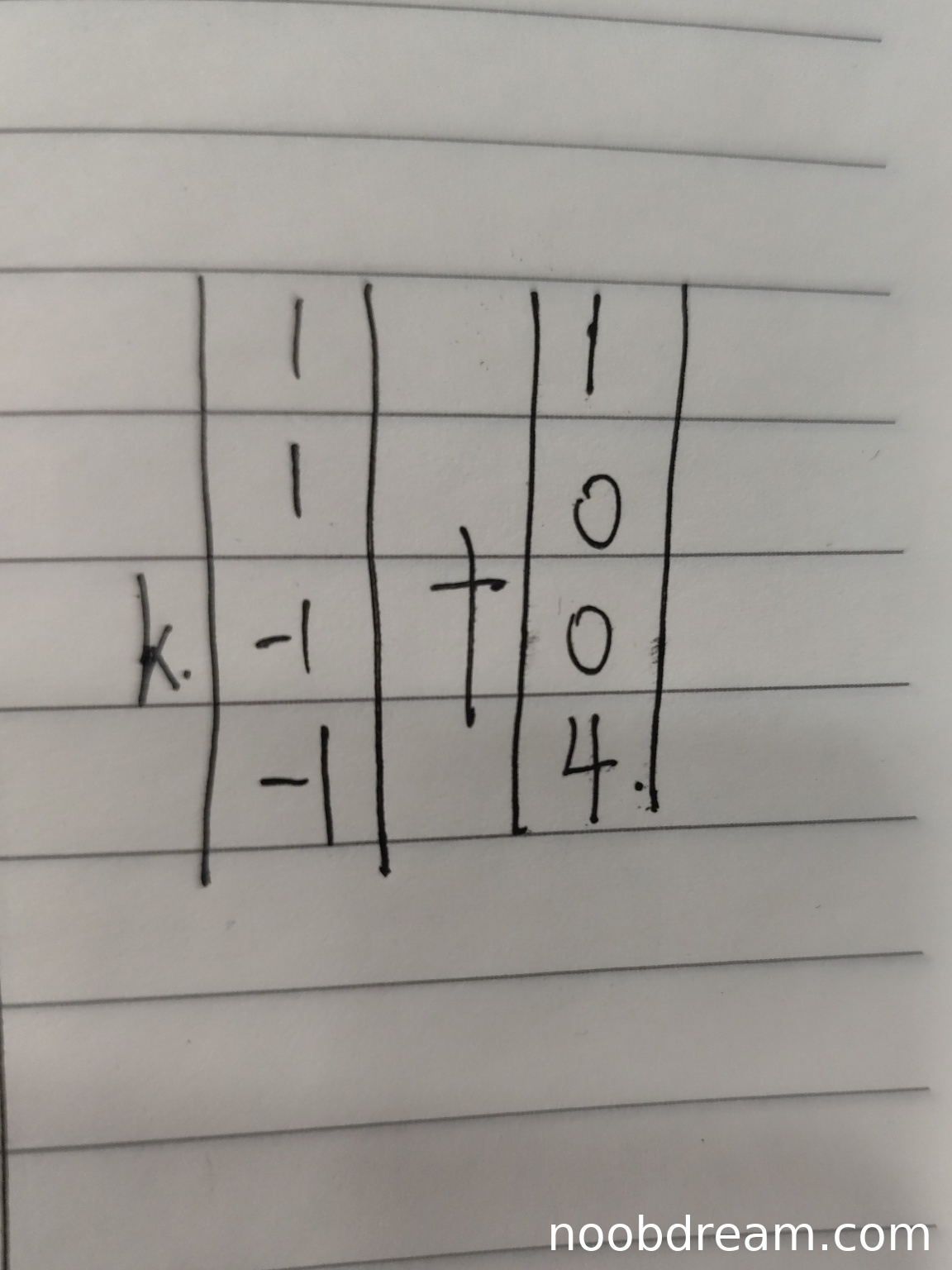 \(k \begin{vmatrix} 1 \\ 1 \\ -1 \\ -1 \end{vmatrix} + \begin{vmatrix} 1 \\ 0 \\ 0 \\ 4 \end{vmatrix}\)