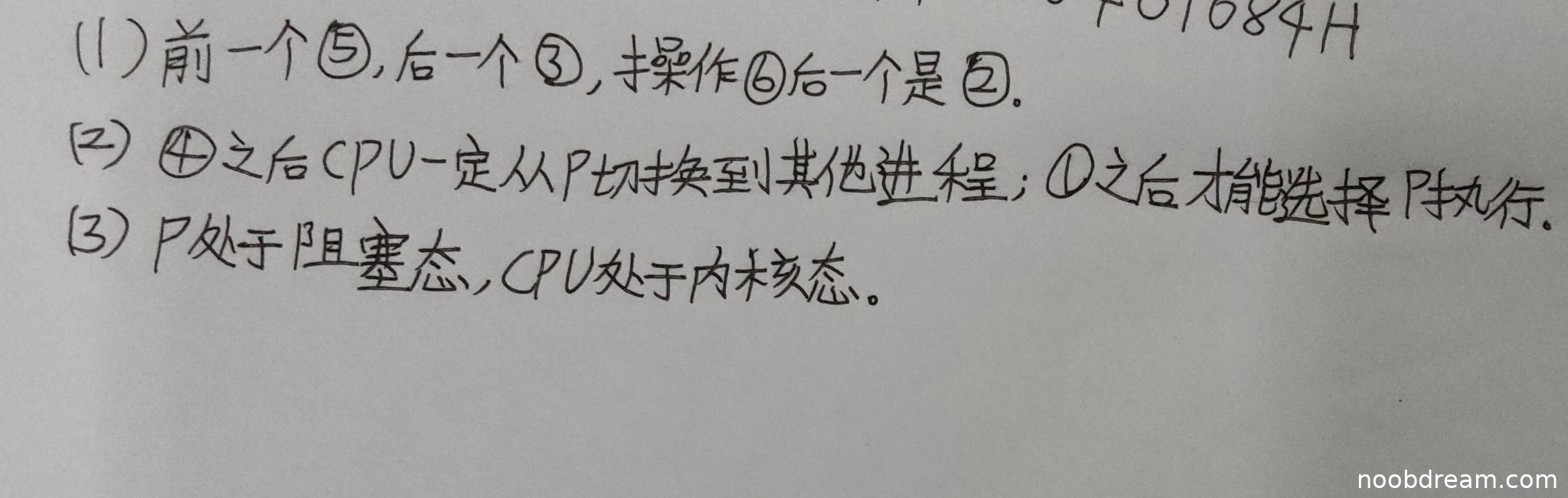 标准答案:②之后CPU一定从P切换到其他进程;①之后才能选择P执行。