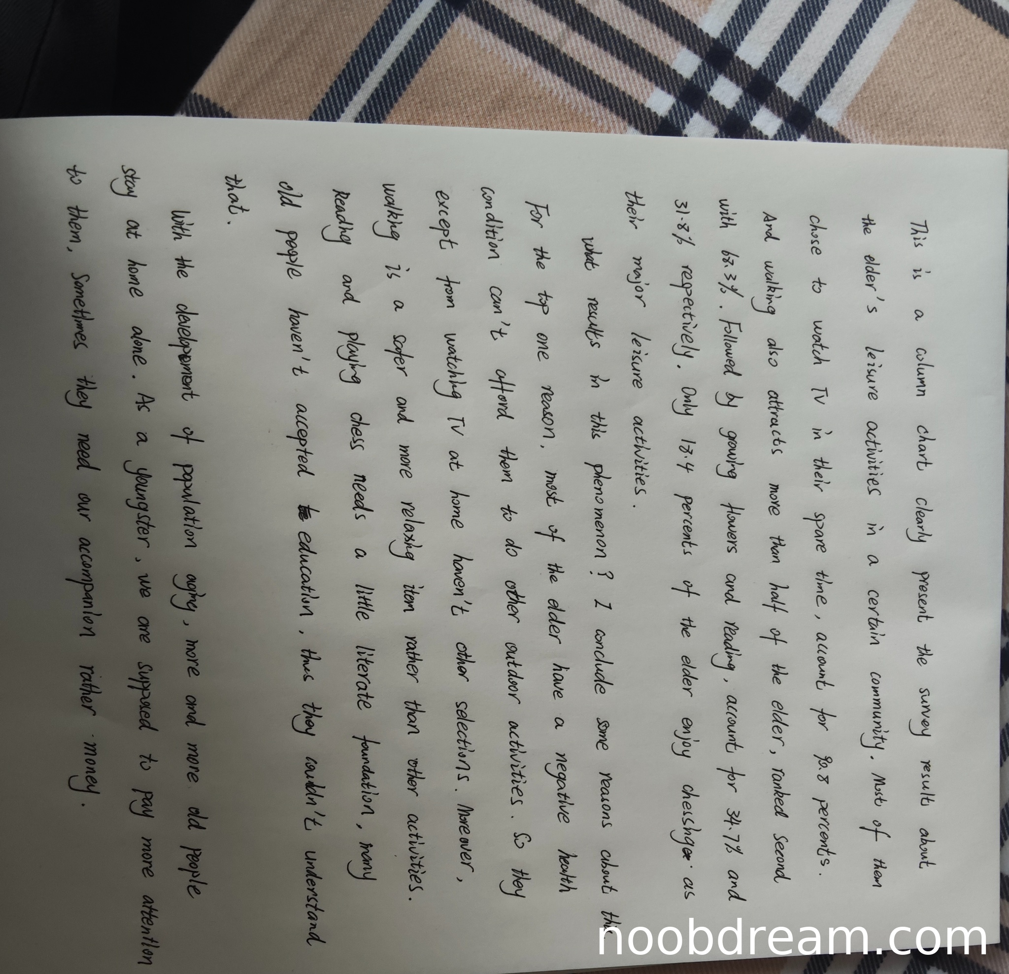 本题为图表作文,要求描述图表并给出评论。学生作答基本完成了任务,但存在以下问题: