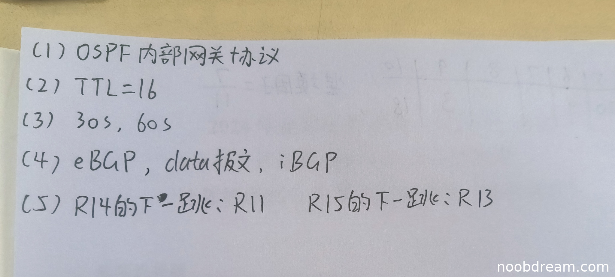 学生回答“R14的下一跳: R11 R15的下一跳: R13”,与标准答案完全一致。得2分。