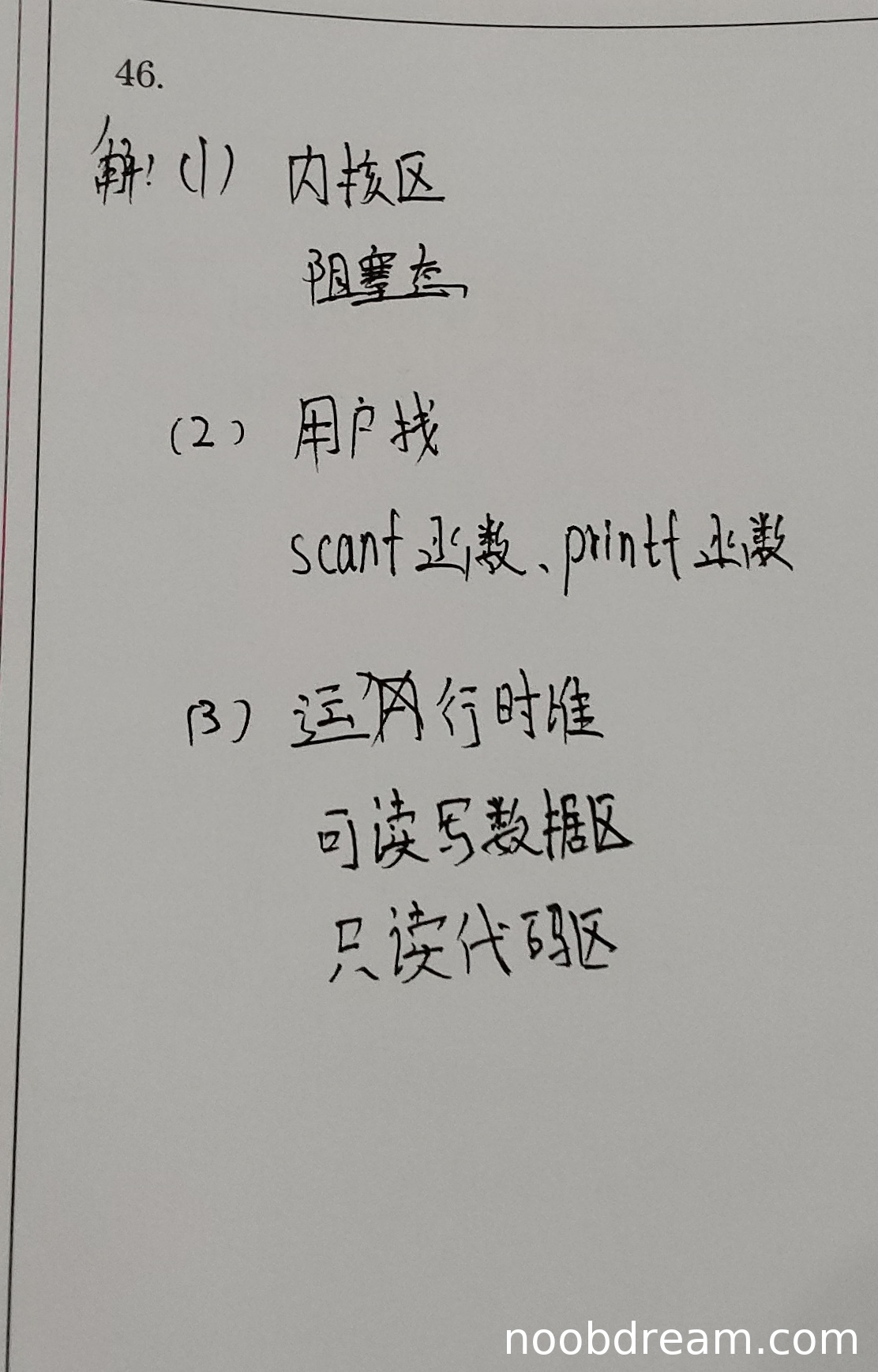 学生两次识别结果均错误地将main()函数的代码位置回答为“用户栈”。main()函数的代码应位于只读代码段(.text段)。此部分逻辑错误,扣1分。