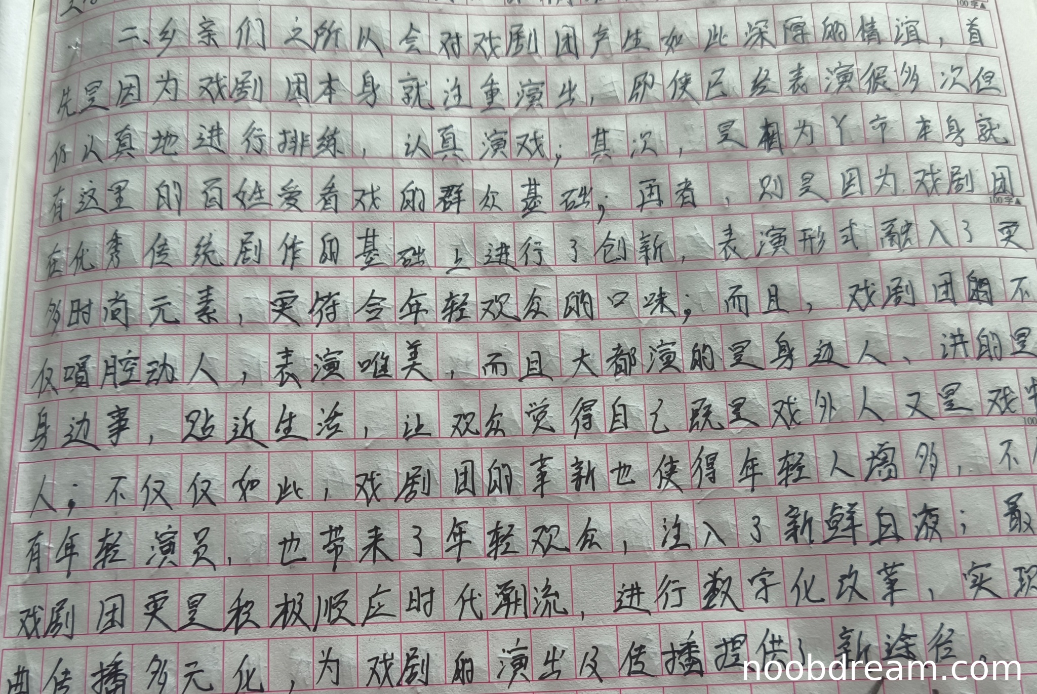 4. “戏剧团的革新也使得年轻人增多,不仅有年轻演员,也带来了年轻观众,注入了新鲜血液”对应了标准答案中的“培养年轻人才,吸引年轻观众”,要点准确。