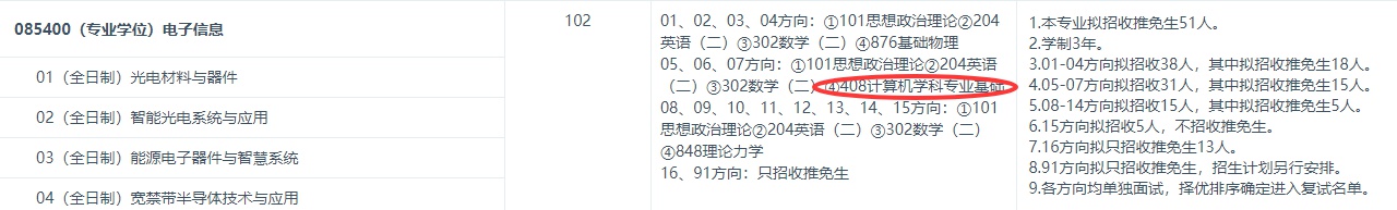085400 电子信息 全60统考+非全