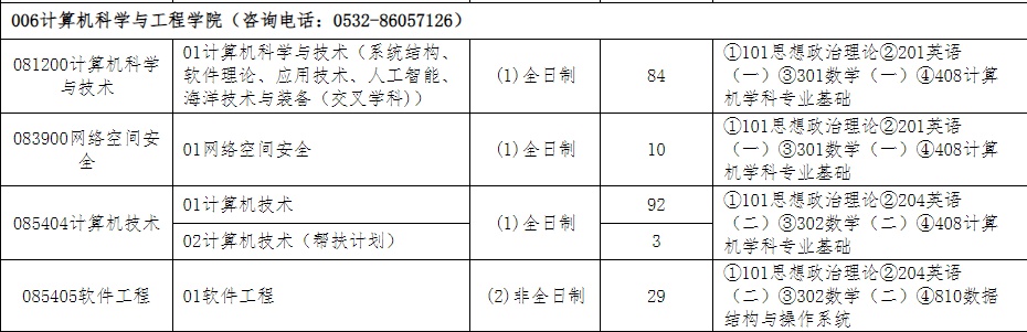 计算机科学与技术(081200)、计算机技术(085404单考)专业考试内容为《软件工程与数据库系统》(参考书目,https://yjsy.sdust.edu.cn/zhaosheng/info/1090/1751.htm);考试形式为笔试,考试时间为2小时。