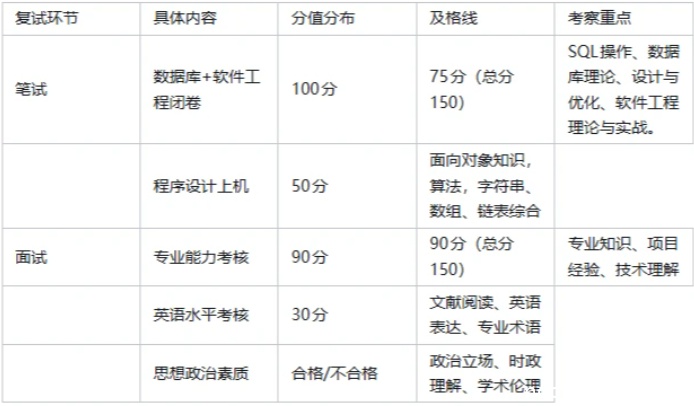 面试(总分150分):专业面试100分,英语面试50分