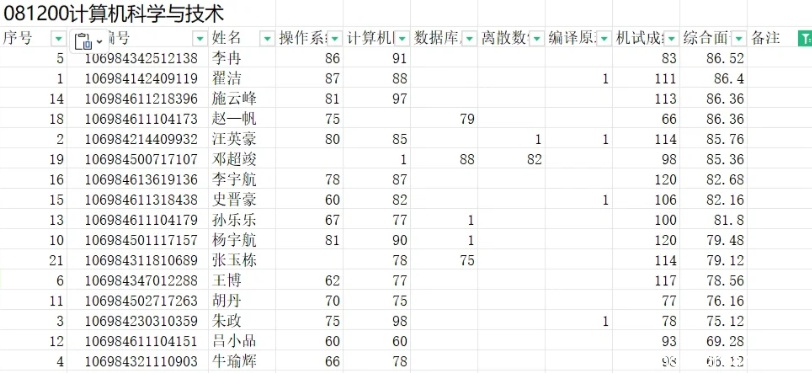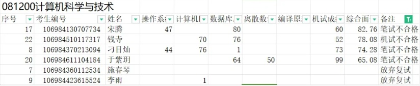 25年计学16人通过复试,3人笔试不合格,1人机试不合格,2人放弃复试,最终录取前12名