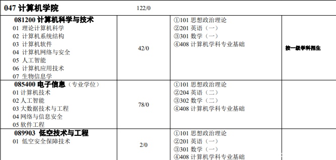 081200 计算机科学与技术【招生计划98】【含77推免】