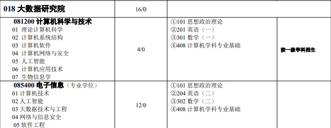 01计算机、大数据、网安、人工智能方向 132名额 推免41人