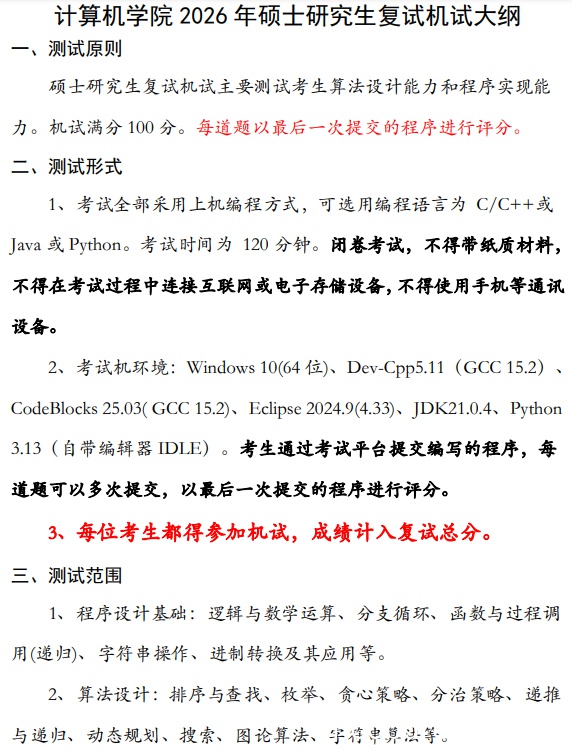 特别注意:26考研机试计入复试总分!!难度大概率会增加!!