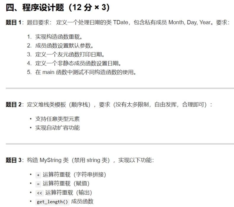 C++笔试题的大题部分是程序设计题也需要写代码需要特别注意
